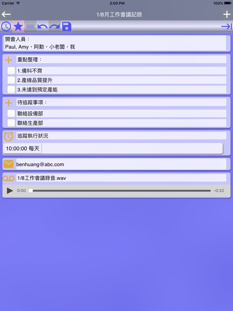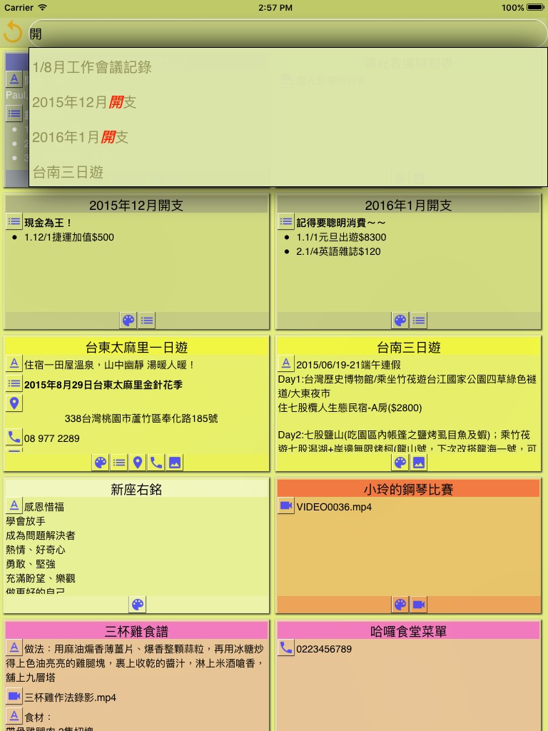 ‧Categories, tags and colors help you manage and differentiate various notes.