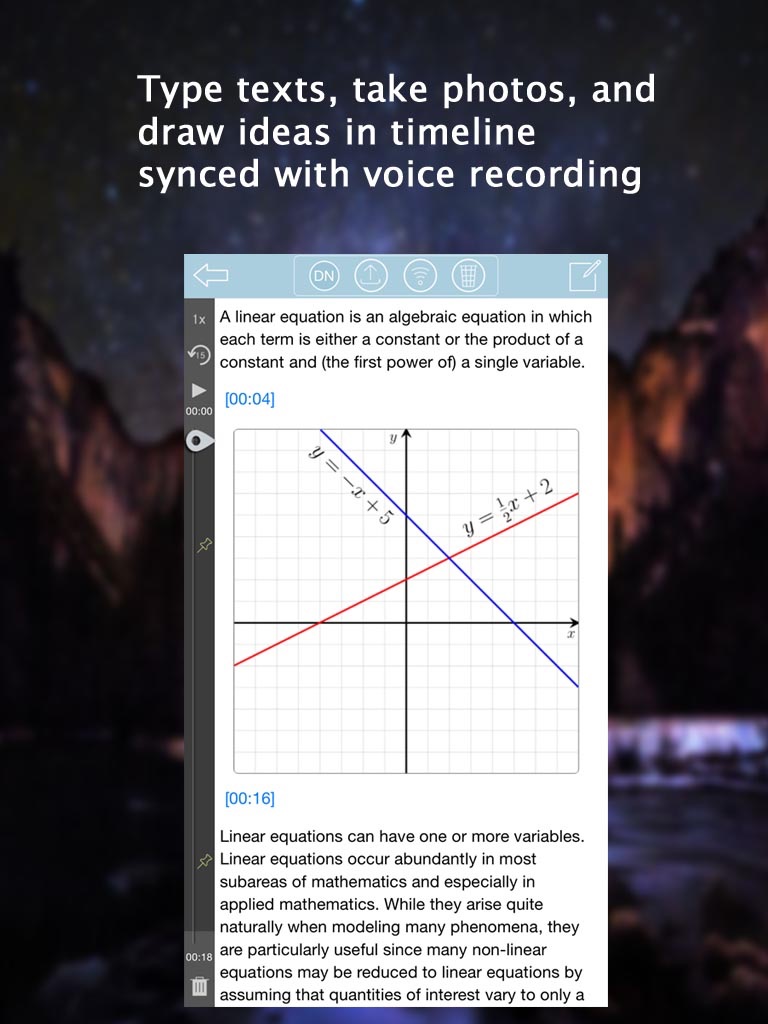 - Voice Recording synced with texts, photos, and drawings.