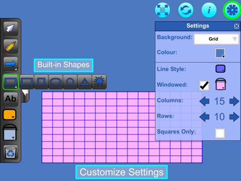 •Include drawing objects: arrows, lines, number lines, rulers, hops, dots, rectangles, squares, ovals, circles, triangles, starbursts, grids and polygons
