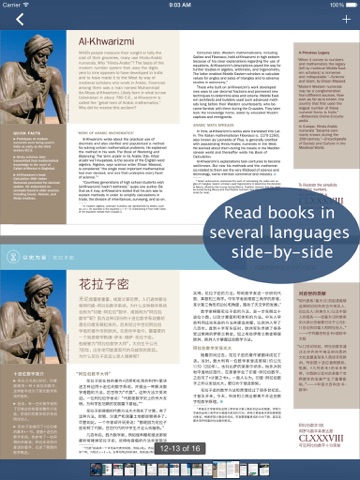 - Split screen: Compare side-by-side the rendering of books across different translations.