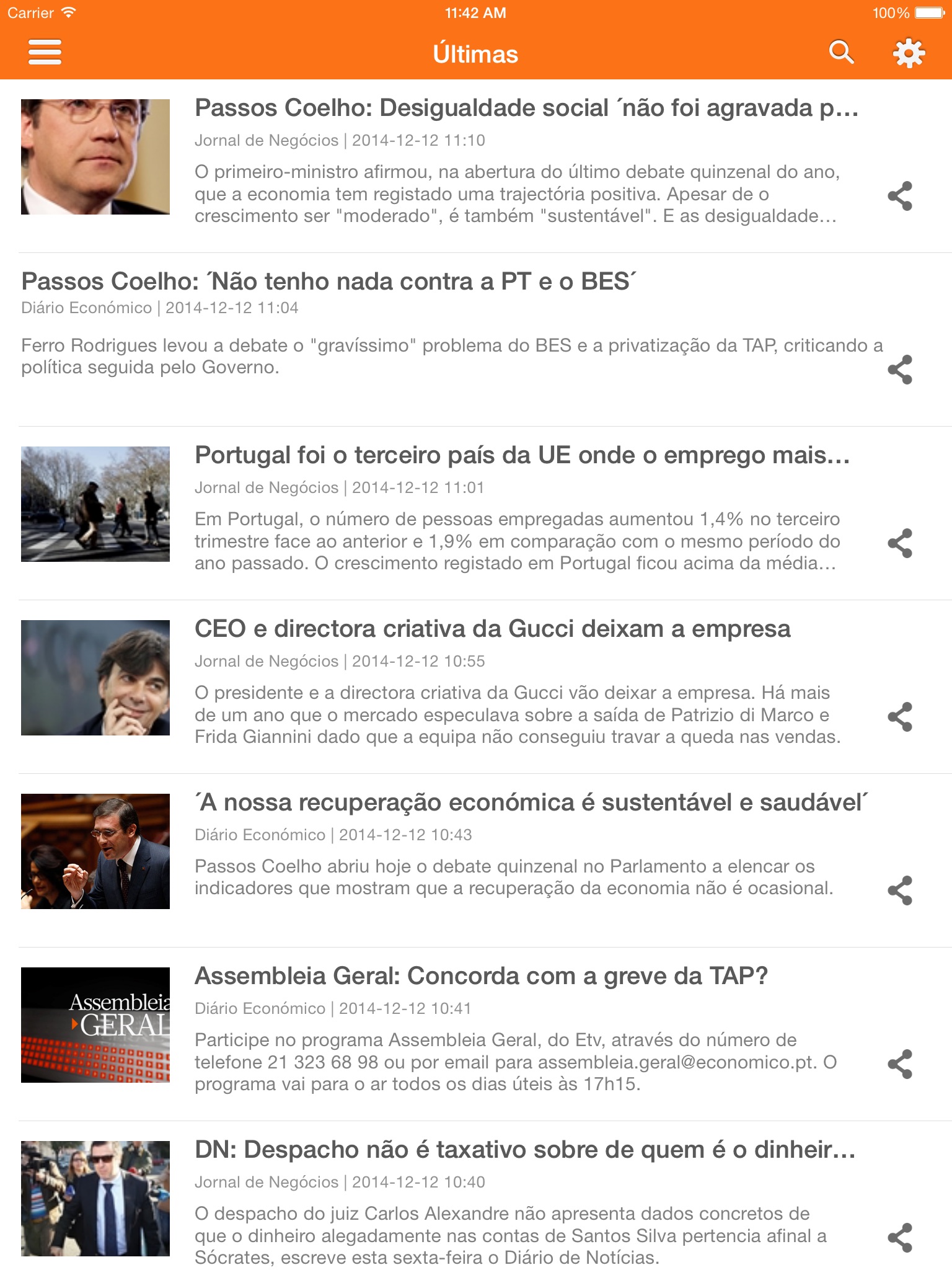 Fontes RSS: Diário Ecnonómico, Dinheiro Vivo, Jornal de Negócios e Oje