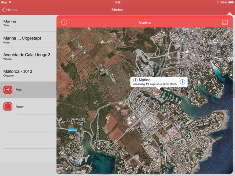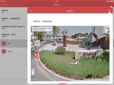 With Notizz you can open different kind of maps with pins and street views on your iPhone. Use street view to get an impression of the location.