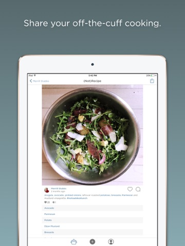 Sharing recipes and only recipes is great. Buuuuut theres no one or no way to "follow" a (not)chef. No clear explanation as to how to properly post just says post recipe, no chance at editing/adding information once its on. Could be a useful app, just let us access it the way its supposed to be