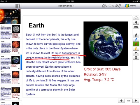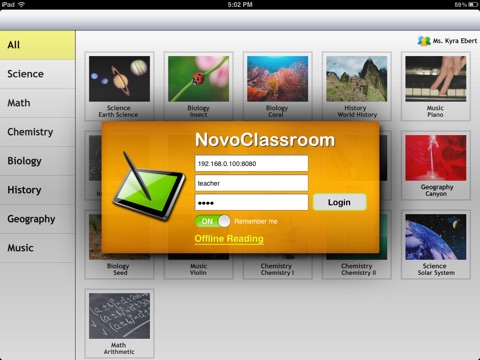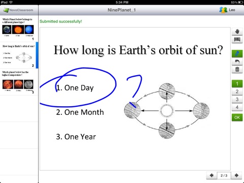 The NovoClassroomTM is a software application for incorporating tablets in classroom teaching-learning activities. It features presentation materials management, instant response (assessment) management, and annotation management. It is designed to run on both iPad and Android tablet devices for coordinated classroom interaction and presentation among lecturer and participants for digital materials.
