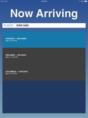 Now Arriving is a simple app that tracks the status of an arriving flight and allows you to plan your time to the airport! Its quick, simple interface allows you to enter in a known flight ID, and the app will instantly pull up details of its arrival, including estimated arrival time, and estimated drive time to the airport given your current location.