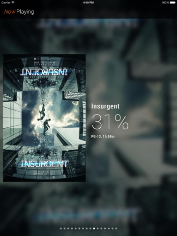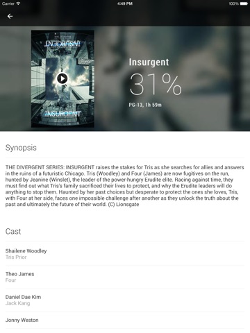 This is a simple and clean application that allows users to flip through a list of movies currently showing in theaters and view trailers. Includes details like rating, runtime, synopsis and cast.