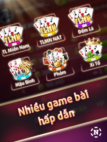 More interesting Play modes such as : Tiến Lên (tien len), Tiến Lên Miền Nam (tien len), Tiến Lên Miền Nam Nhất Ăn Tất, Tiến Lên Miền Nam Đếm Lá (tien len dem la), Tiến Lên Miền Nam Đếm Lá Nhất Ăn Tất, Mậu Binh (mau binh), Xì Tố (xi to), Phỏm, etc.
