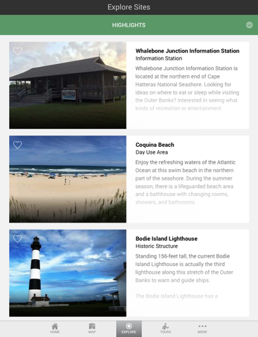 Accessibility - Audio-described sites, alternative text images, combined with the built-in iOS accessibility features, make it possible for all to enjoy Cape Hatteras National Seashore.