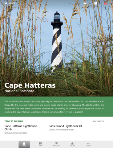 Explore Cape Hatteras National Seashore with this official National Park Service app! Relax or play on sandy barrier island beaches, in the energetic Atlantic Ocean, or in the nurturing Pamlico Sound. Climb the historic Cape Hatteras and Bodie Island lighthouses. Discover the history of the area known as the “Graveyard of the Atlantic,” and the people who call this remote place home. Watch a variety of bird species migrate along the Atlantic Flyway. All this and more await you in America’s first national seashore!