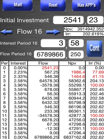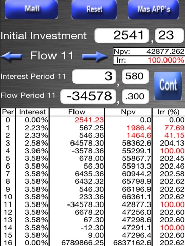 Up to 16 cash flows that can be edited once introduced