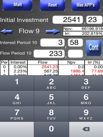 Calculation of NPV and IRR of a project, with a precision of 3 decimals. INTERFACE very intuitive and visual.