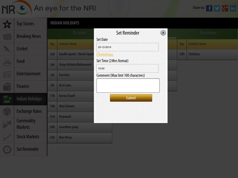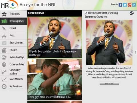 Unified News destination for NRIs - Categories include Breaking news, Indian Festivals, Cricket, food, Bollywood, Finance News, Finance trend.