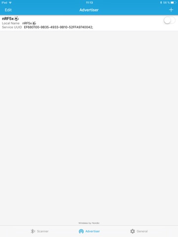 nRF Connect also allows your iOS device to advertise as a peripheral, with full support of many of Bluetooth SIG adopted profiles.