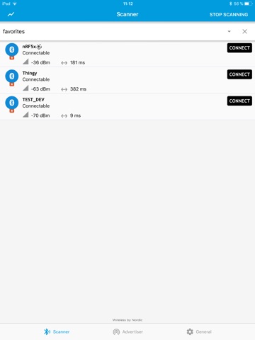 nRF Connect is a powerful generic tool that allows you to scan and explore your Bluetooth Low Energy (henceforth Bluetooth LE, also called Bluetooth Version 4.0+ of the Bluetooth specification) devices and communicate with them.