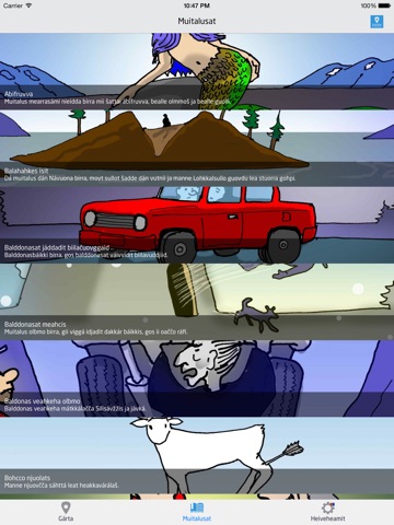 I denne appen får du høre eventyr og sagn fra Sápmi, samtidig som du reiser med bil gjennom områdene, der de skal ha skjedd, eller bare reiser dit i tankene. God tur og kjør pent! Appen er ikke ment for sjåfører, men for passasjer.