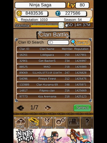 *This App requires an existing Facebook Ninja Saga account that has at least 1 character who has joined a clan.