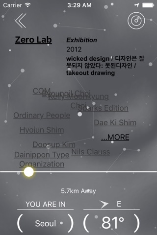 The N-S-E-W, CITY COMPASS project archives the city and the relationship of the artists who analyze the city based on the Typojanchi 2015 artists roster information. If the Typojanchis other projects focus on the "results" from "city-artist" relationships, this project links the audiences and the cities with the artists personal city experiences. Through Typojanchi, artists from all over the countries rush to the city and create a cultural trace in their own ways. However, as Jane Jacobs pointed out in her book, The Death and Life of Great American Cities (1961), when we create something new, the city become a subject that gives us new experiences of spaces conversely. In other words, when an artist creates a city newly, the city also can raise one artist. The audience who visits the exhibition, faces to the city location-based infographic experiences through a compass on board the mobile application, constructed by a database system with artist-related city information. This project explains the artists (and the art works) by the artist (s information) therefore, it has "meta" and "off the space" characteristics at the same time. Therefore, it suggests an imaginary trip outside of Culture Station Seoul 284 to the city where the artists personal experience dwelt.