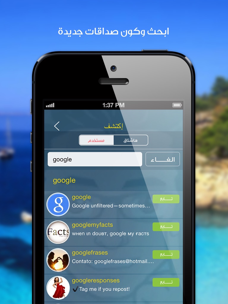 ميزة اخرى للتطبيق هي الحصول على أجمل ما نشر في الإنستقرام مع إمكانية البحث من حولك أو أي مكان في العالم أو الأشخاص الذين تتابعهم أو الهاش تاق الذي تريدها.