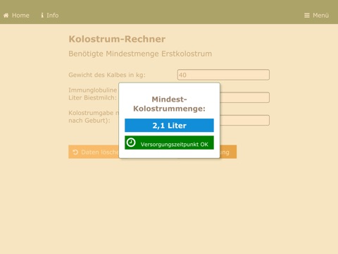 Mit diesem Rechner können Sie die Mindestmenge an Kolostrum abschätzen, ab der Ihr Kalb einen „ausreichenden“ Immunschutz erwirbt.