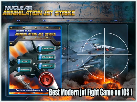 The sum of all fear is the Nuclear Annihilation Jet Strike. Stop those jet fighters to enter the our air and ground territorial before they make the drop. Is your duty to destroy and annihilate the aircraft that is carrying the nuclear weapon or get your country to wipe out of the map. It will be a hard strike on our zone so better to prepared your death letter for we will fight back and protect our love ones in our home land.