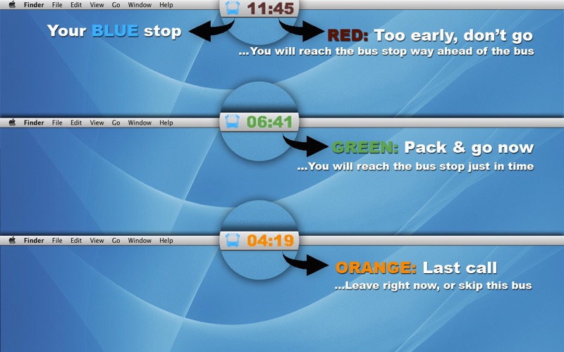 - By default the timer shows the time left until the bus leaves your bus stop, but if youd rather know how much time you have until you need to head out, its all there in the settings panel.