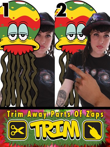 2.Click "Zaps" and choose from several designs, graphics & phrases.