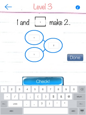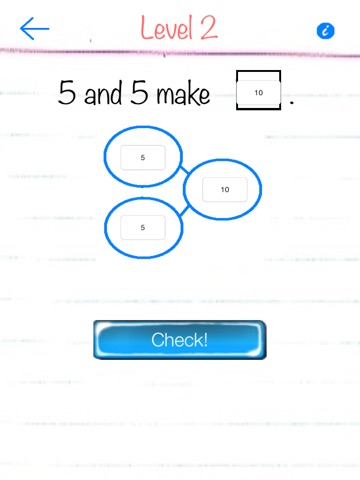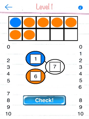 In level 1, students will connect the tens frames and number bond representations of the numbers 0-10. Levels 2 and 3 build on this understanding by removing the support of the tens frame and adding a sentence representation. Level 3 promotes algebraic thinking and introduces the concept of subtraction by having the student find a missing addend.