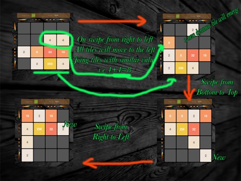Swipe in any direction to move all tiles. The rule is simple! When two tiles with the same number touch, they merge into one. There is a target tile for each level, get to the target tile and make a high score.