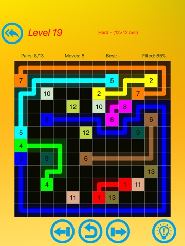 Connect matching colors with pipe to create a pair. Pair all numbers, and cover the entire board to solve each puzzle. But watch out, pipes will break if they cross or overlap!