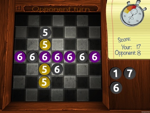 Number War is a iphone strategy board game that combines the logic of chess, the simplicity of Go, and the risk-reward elements of poker. It requires players to be able to calculate a variety of possible moves quickly while planning several moves in advance.