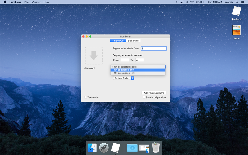 Add page numbers to PDF file easily.