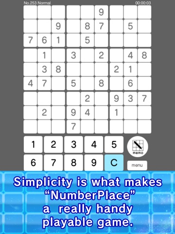 Time to play “NumPlace”! We’ve prepared four full-scale difficulty levels: Easy, Usual, Hard and Insane.