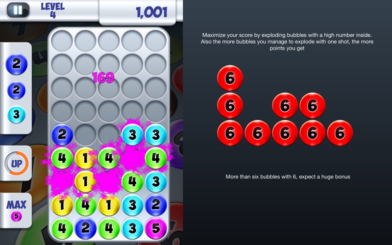 - Simple and addictive: anticipate the next balls, sum up them and make them all explode as quick as you can !