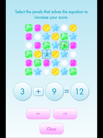 Practice math by matching gems of the same kind.