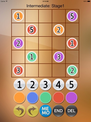 Place four colors (Orange, blue, green, and red) in each row, column, and bolded boxes. Colors should not repeat in the same row, column, or box.