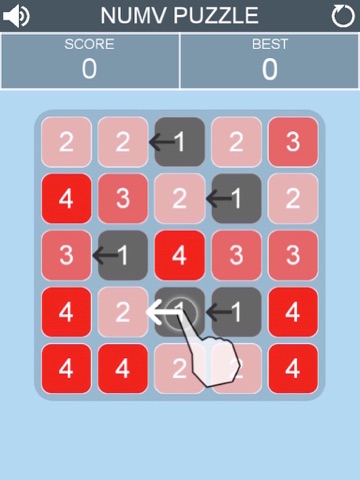By moving the number block, and put the same number of three or more side by side, one of the numbers block only is +1, the rest will disappear.