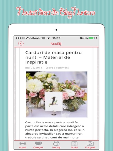 Aplicatia nunta mea este realizata de unul din cele mai citite bloguri de nunta din Romania: www.BlogNunta.ro