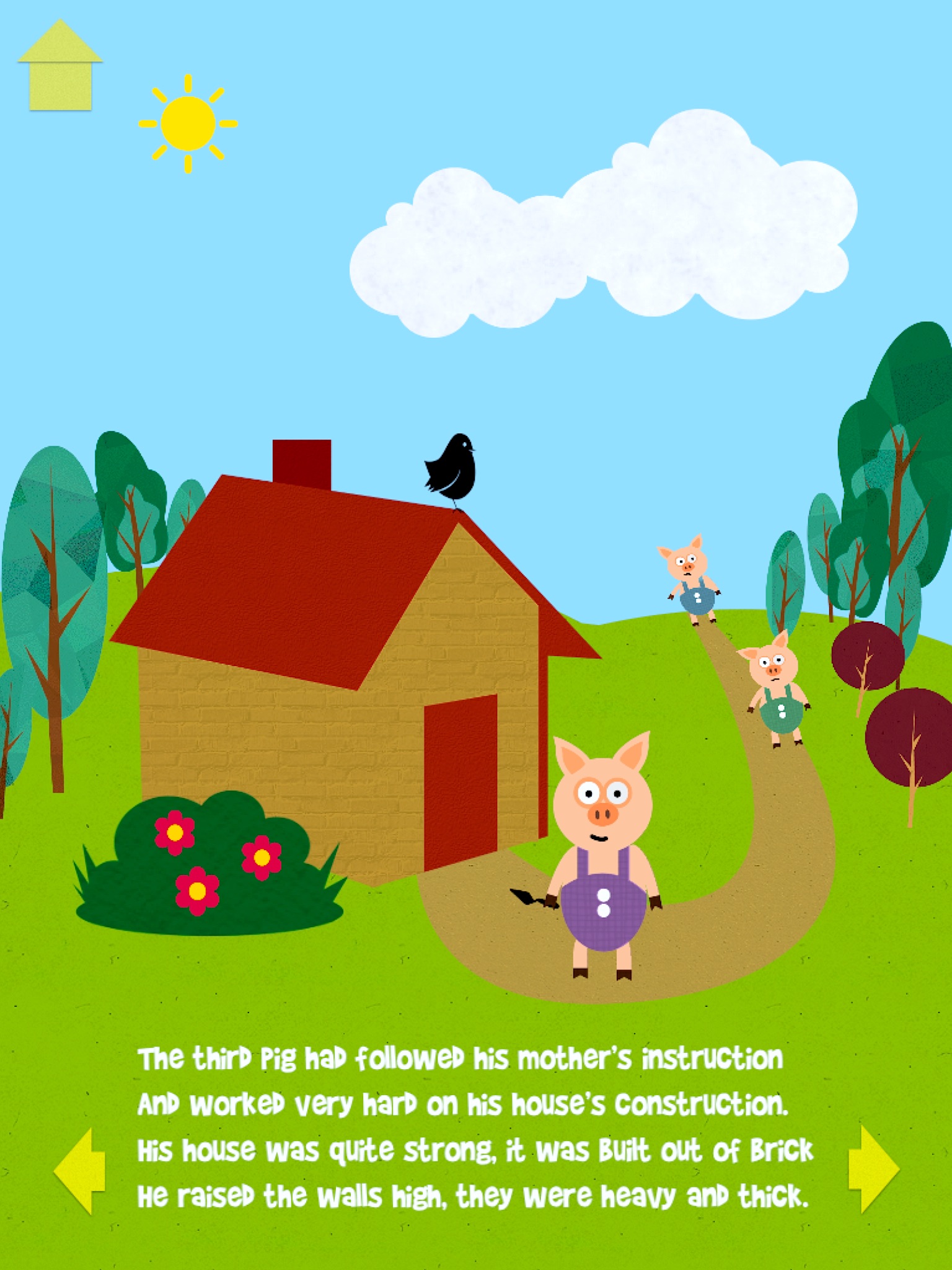 Specially designed for infants, toddlers and younger children, The Three Little Pigs is beautifully illustrated with fun animations, interactive characters and pleasant background tunes.