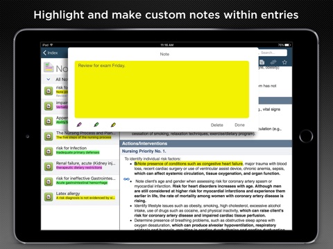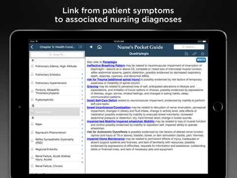 Im in my 3rd semester in an ADN program and I really wish I bought this app sooner. The book is helpful but the app is even more convenient since you can just carry your phone with you in clinical and dont have to worry about losing your book or having to carry it around. I gave this app 4 stars because I wish there was some sort of categories for physical, psychosocial, and educational nursing diagnoses. But other than that its wonderful and I would strongly suggest purchasing this app! Hopefully the developers make those categories (: