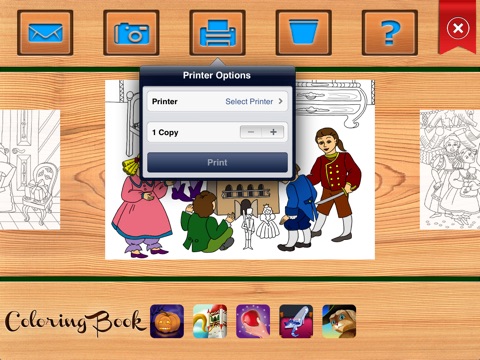 Lets your children dive into fascinating world of fairy tale "Nutcracker"! They can try role of Hoffmann and color personages on their own. There are 25 pictures which can be colored, sent by email, printed, saved to album or uploaded to Facebook what gives children almost unlimited opportunities.