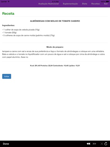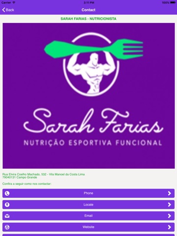 NutriSarahFarias e um aplicativo destinado aos pacientes da Nutricionista Sarah Farias, que tem como objetivo melhorar a adesao ao plano alimentar e facilitar no dia a dia, tendo acesso as refeicoes e suas trocas em qualquer lugar que esteja. Cada paciente possui seu login de forma individualizada e tera acesso a sua dieta de forma individualizada, juntamente com uma lista de substituicao, a qual o paciente podera trocar o alimento de acordo com suas preferencias e opcoes no momento de sua refeicao. Estara disponivel tambem aos pacientes, diversas receitas para trocas tanto nos lanches como nas principais refeicoes como almoco e jantar. Assim como o acesso a sua suplementacao, quando esta for necessaria e a sua avaliacao corporal, observando assim, seus desempenho apos cada retorno. Busque essa facilidade para o seu dia a dia.