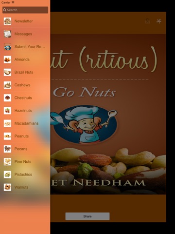 This app is all about nuts. Their nutritional value and recipes. Through the app you can share recipes and pictures. Please help this app grow by submitting your own recipes.