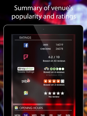 We give you direct access to the nightclub / bar review and ratings from Yelp,
