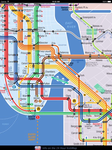 Also available: The "24 Hour KickMap" - the only NY subway map that also shows the NIGHT service cutbacks. It is fully interactive with Google street maps right in the app, an on-the-map station finder and push notifications for service alerts.