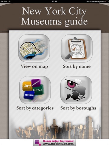 Youll search the museums sorted by names, categories, maps location or by boroughs.