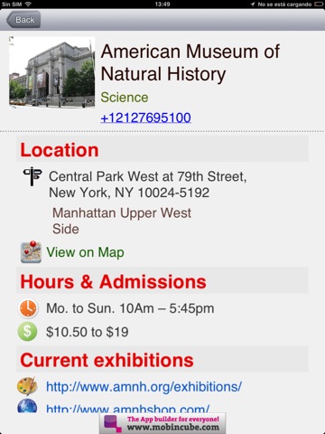 The ultimate New York (NYC Museum) city museums guide. All the information about the best museums in New York city in just one application. You can find useful information about the museums: transports guide, hours and admissions, detailed directions, view map locations, type of museums, contact information, museums website and the current exhibitions that are showing in each moment.