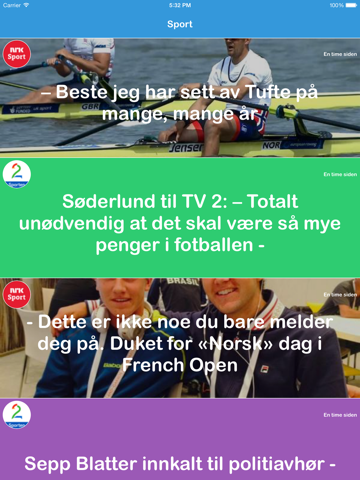 Nyheter Nå er en nyhetsapp som viser det siste innen nyheter, sport og underholdning fra Norges største mediehus. Man kan lese artiklene deres direkte inne i appen, dele de med venner og på sosiale medier.