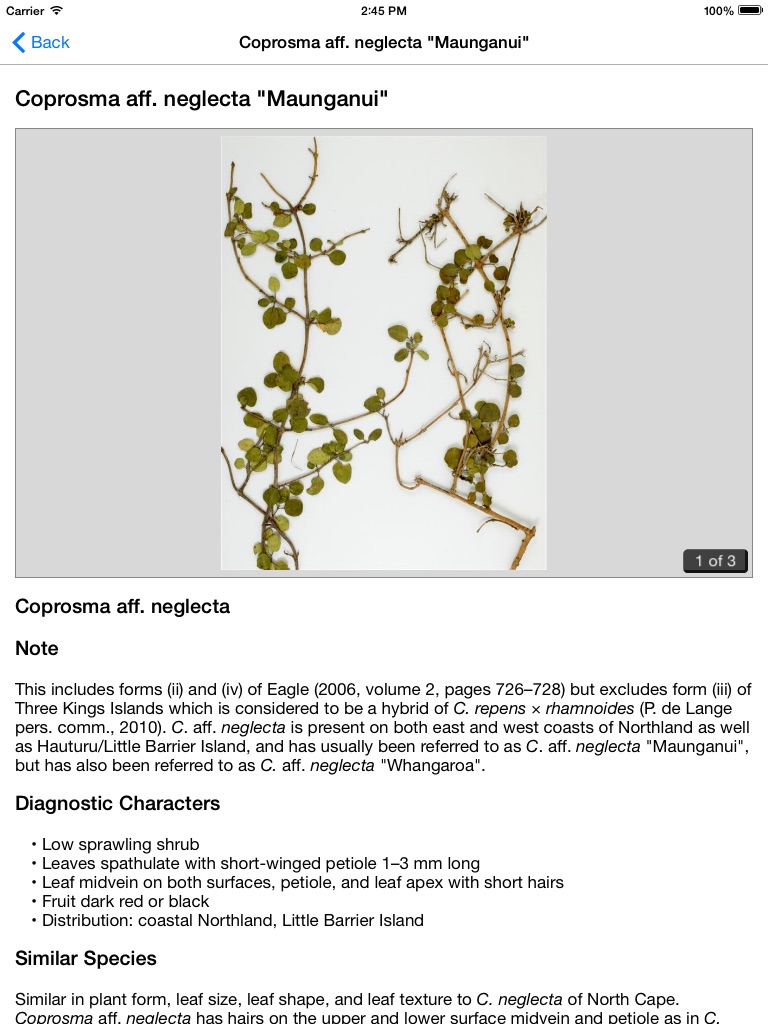 This free app is for the identification of coprosmas, a large genus of native New Zealand woody plants.