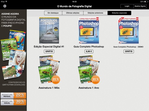 A O Mundo da Fotografia Digital é uma revista mensal, com a possibilidade de efetuar uma assinatura mensal ou anual. Ao efetuar a subscrição, usufrui de um desconto substancial rem relação ao preço de cada edição individual. As assinaturas são automaticamente renovadas. Caso deseje cancelar a sua assinatura, deverá aceder à sua conta e desligar a opção “Renovação Automática”, pelo menos 24 horas antes do prazo final da assinatura.