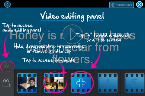 - tap to insert existing footage from your camera roll or record new footage directly into your video project
